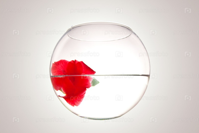 Красивый цветок в круглой вазе, наполненной водой