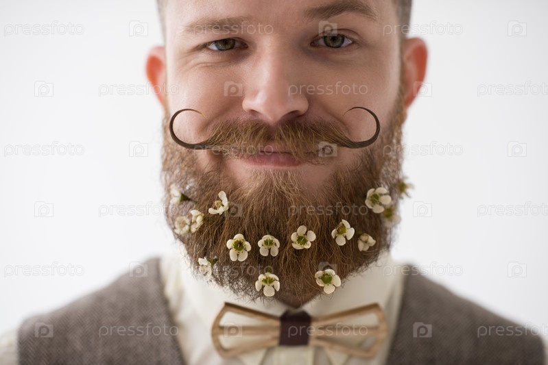 Человек с цветами в бороде
