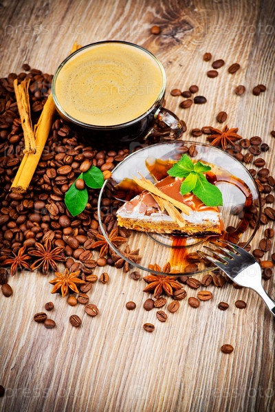 Кофе на деревянном фоне