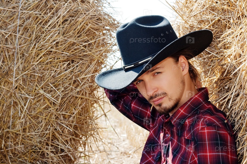 Мужчина в шляпе возле стогов сена
