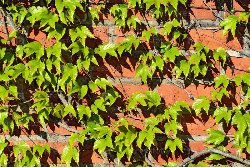 Дикий виноград на старинной кирпичной стене
