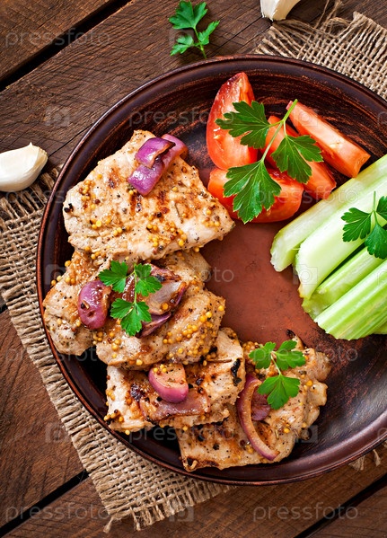 Кусочки филе свинины на гриле с овощами