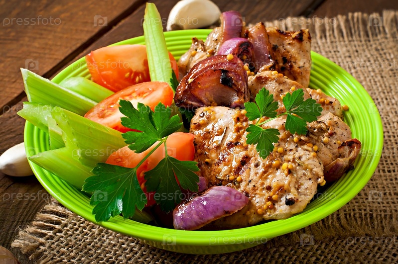 Кусочки филе свинины на гриле с овощами
