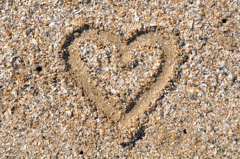 Сердце нарисовано на песке