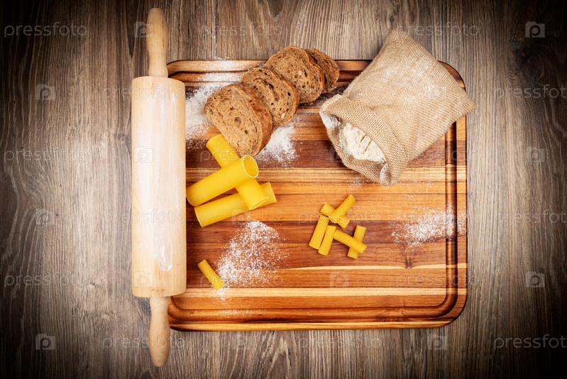 Хлеб выпечки набор на деревянных фоне