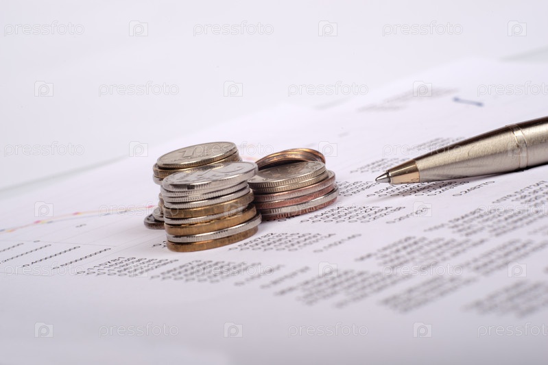 Документ с графиками и монеты