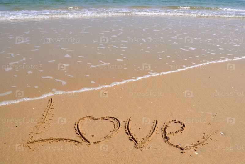 Слово на песчаном пляже