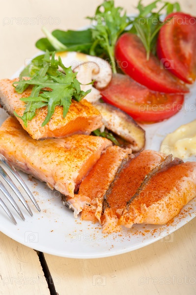 Жареное филе лосося с овощами