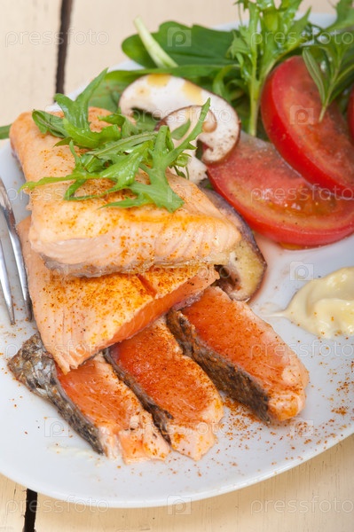 Жареное филе лосося с овощами
