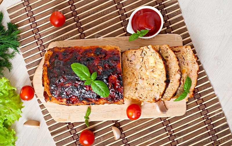 Домашний мясной рулет с кетчупом и базиликом