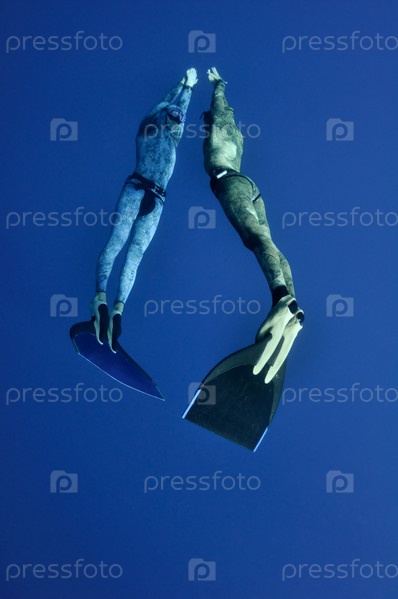 Фридайверы выполняют синхронное погружение на глубину