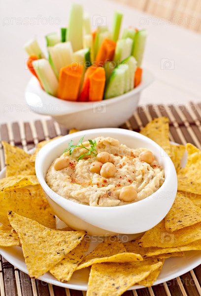 Домашний хумус с овощами и чипсами пита
