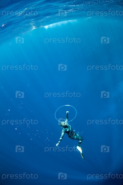 Фридайвер собирается проплыть через кольцо