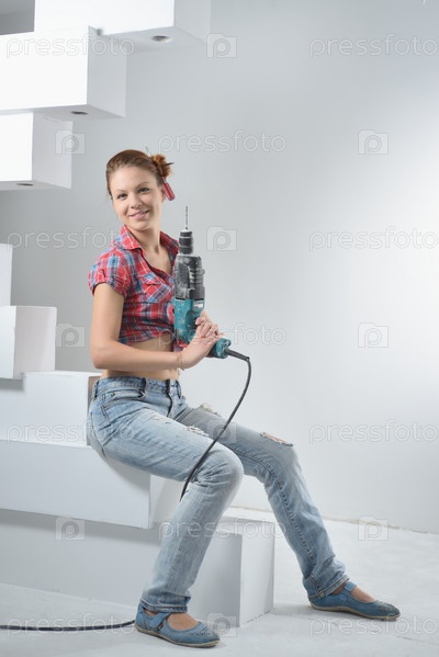 Девушка с перфоратором