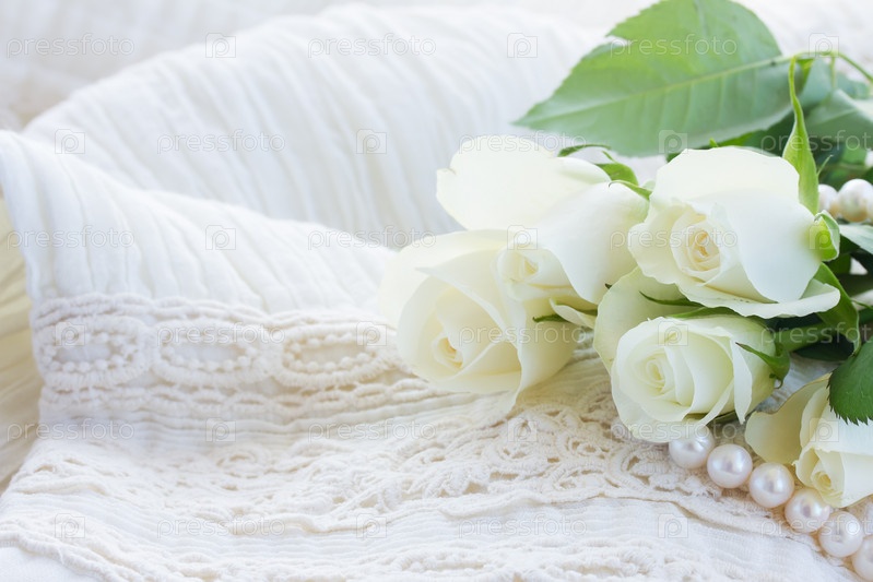 Розовые и оранжевые розы с кружевами