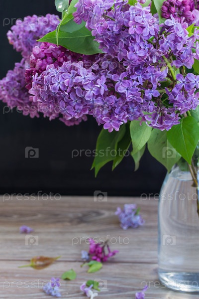 Цветы сирени на черном фоне
