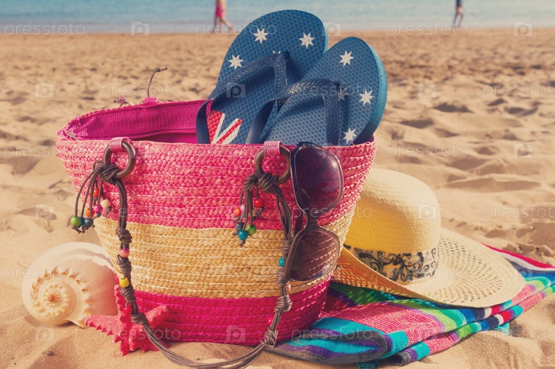 Аксессуары для принятия солнечных ванн на песчаном пляже