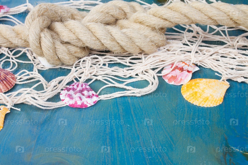 Рыболовная сеть на деревянном фоне