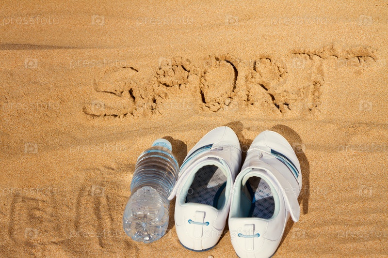 Кроссовки и бутылка на песке