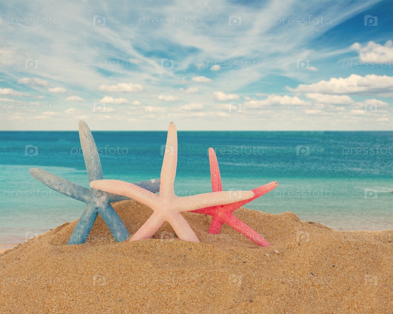 Три морские звезды в песке