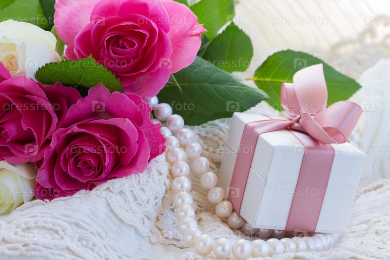 Розовые и оранжевые розы с кружевами