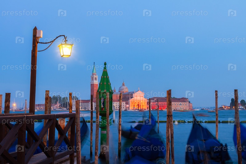 Гондолы, плавающие в Гранд-канал в ночное время, Венеция