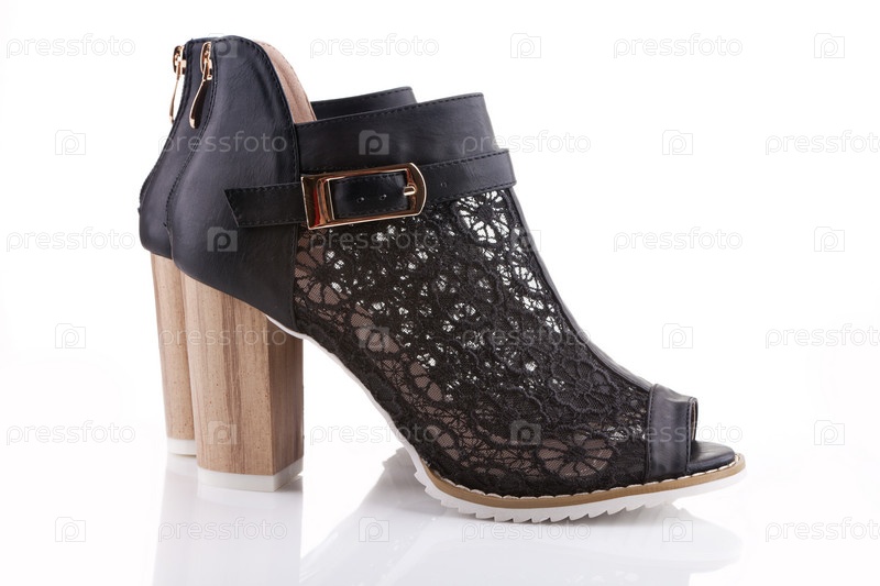 Женская обувь с черными кружевами, белой подошвой и деревянными пятками