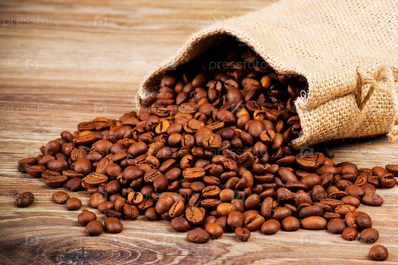 Кофейные зерна на деревянном фоне