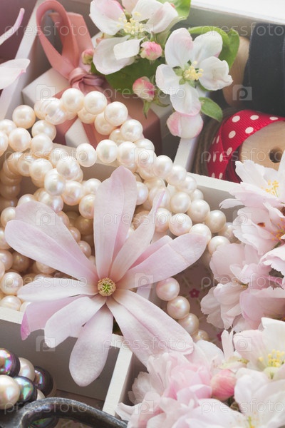 Цветы дерева с жемчугом и кружева