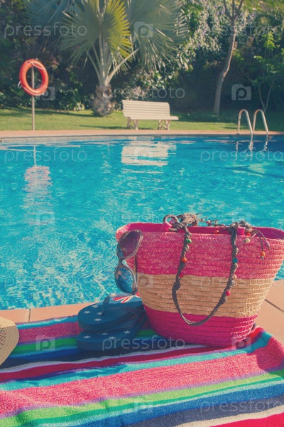 Аксессуары для купания возле бассейна и полотенце