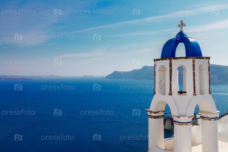 Вид на кальдеру с лестницы и колокольня, Санторини