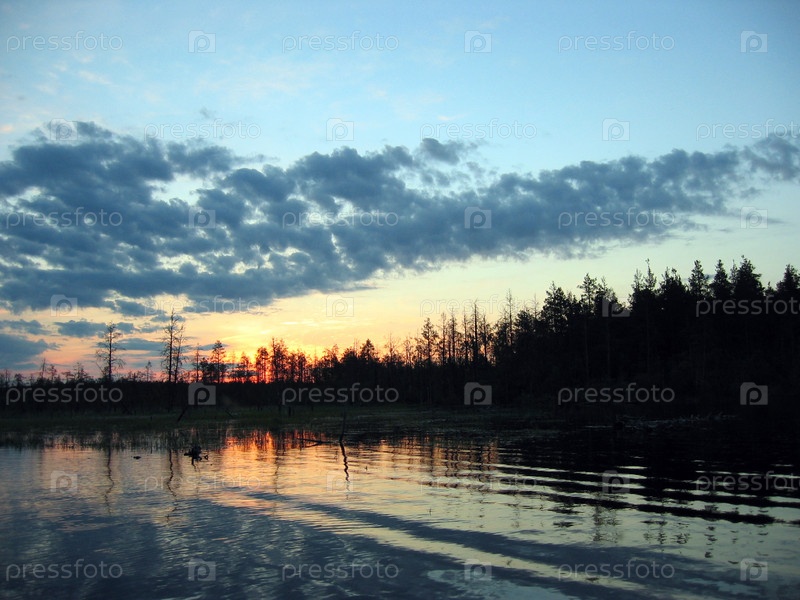 Закат на озере в Карелии