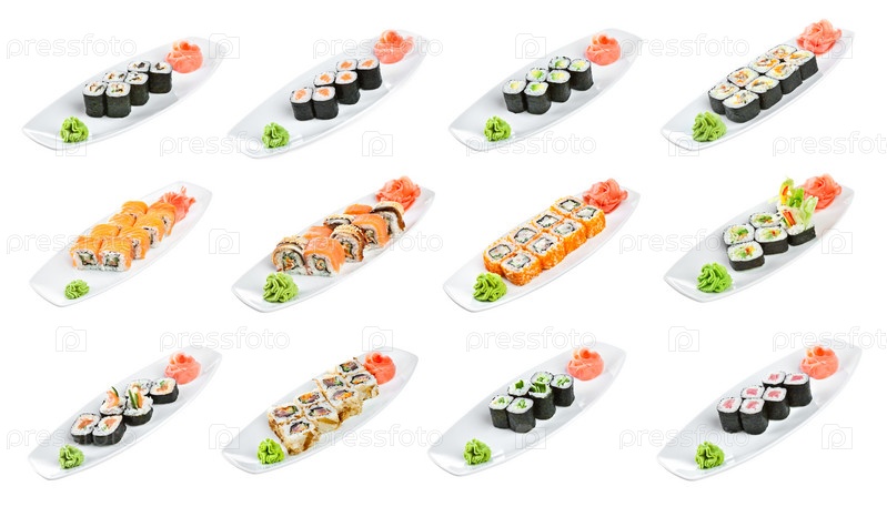 Различные суши на белом фоне