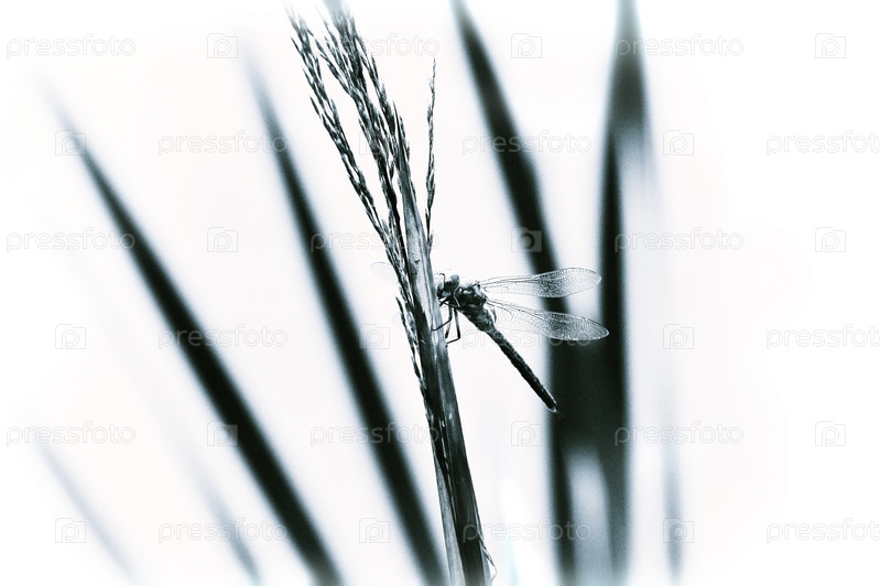 Стрекоза, сидя на траве
