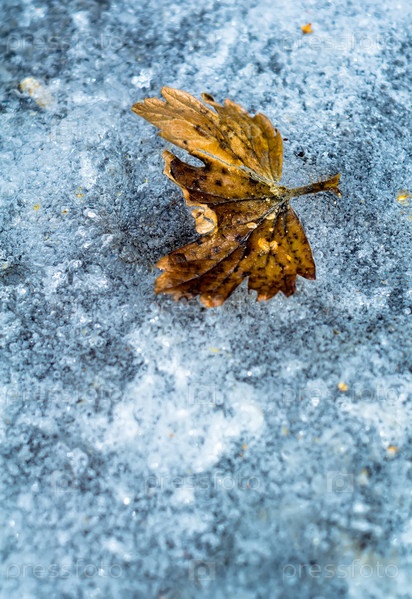 Желтый лист на льду