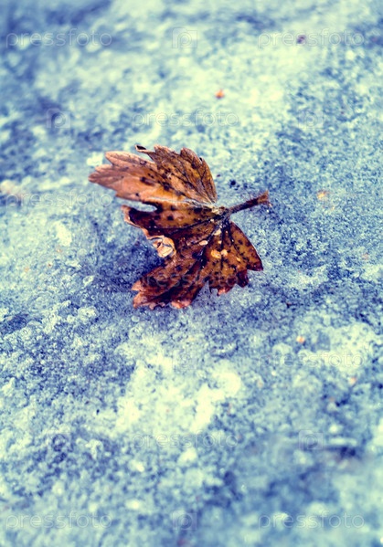 Желтый лист на льду