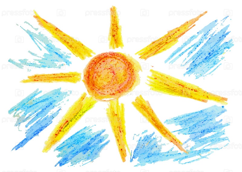 Рисованное солнце и облака