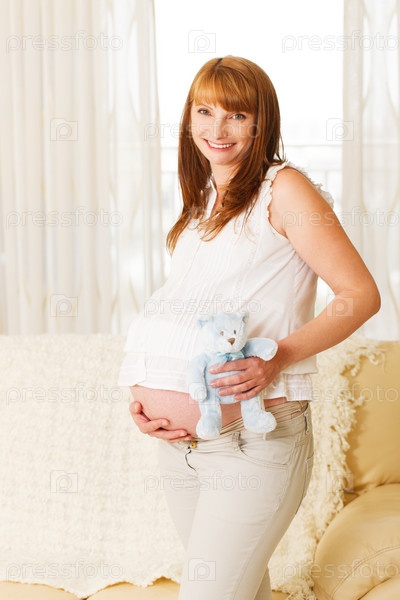 Беременная женщина с мишкой