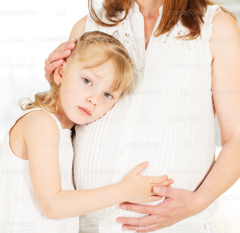 Девочка, обняла беременную маму