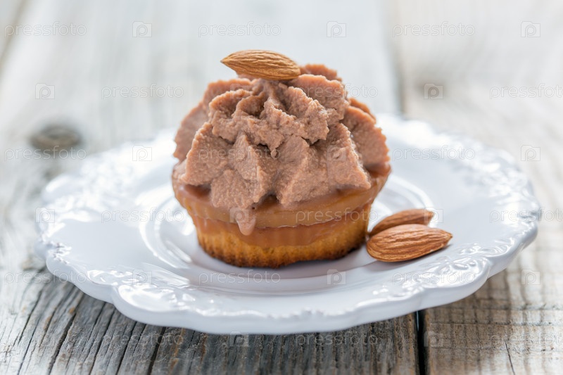 Миндальный торт творожный крем и карамель