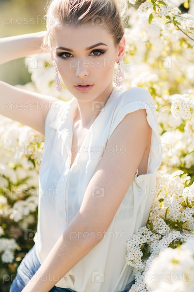 Красивая женщина в цветущем саду