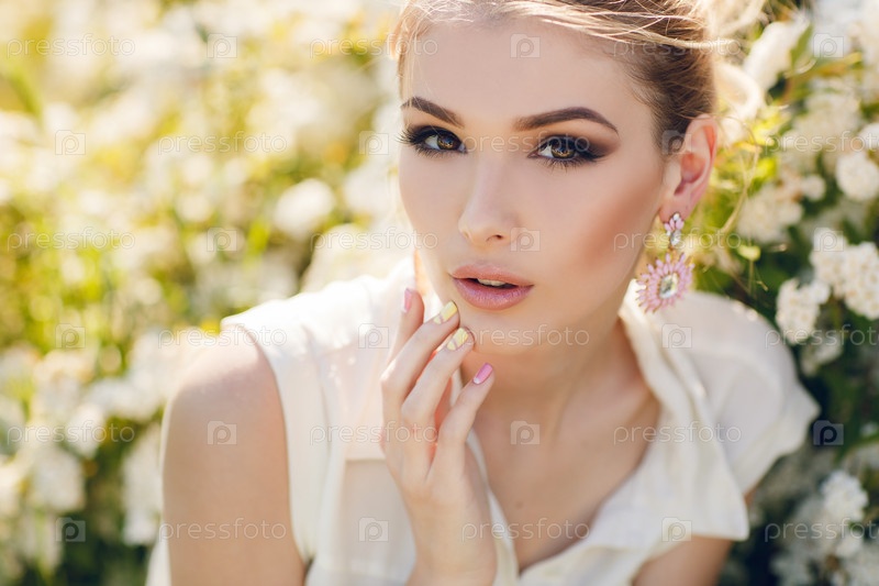 Красивая женщина в цветущем саду