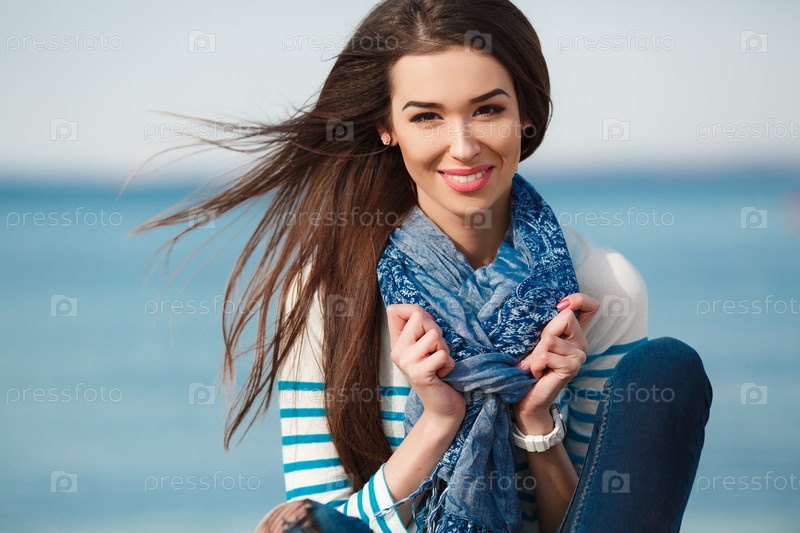 Красивая брюнетка на берегу моря