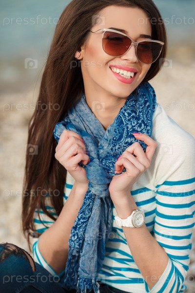 Красивая брюнетка на берегу моря