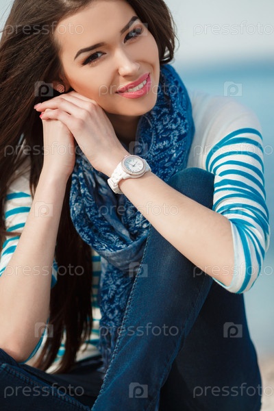 Красивая брюнетка на берегу моря