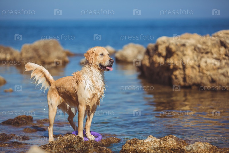 Мокрый лабрадором на берегу моря