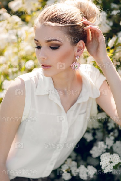 Красивая женщина в цветущем саду