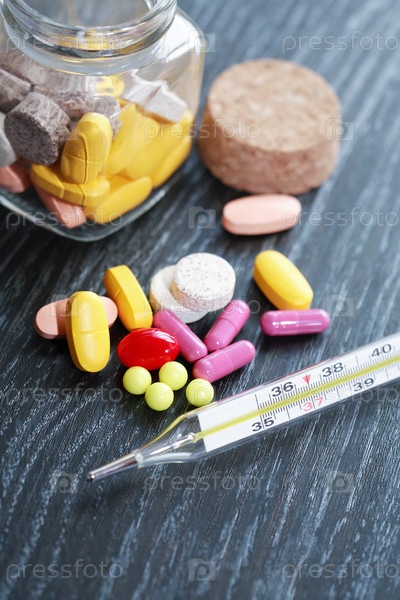 Таблетки и термометр