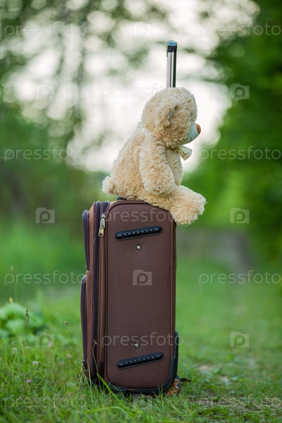 Мишка, сидящия на чемодане