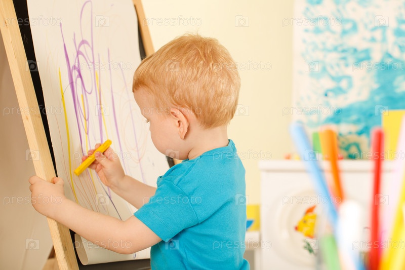 Дошкольник рисует мелом